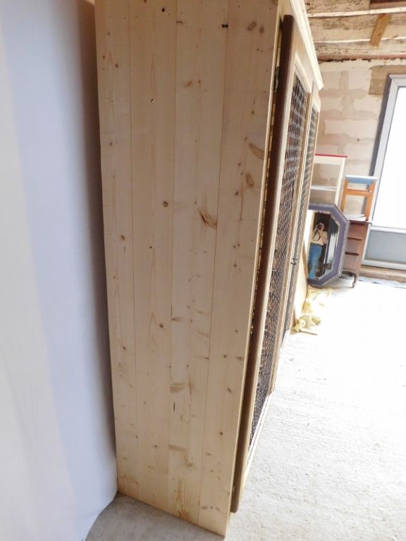 Then hubby set about removing all the concrete boards, and it was at that point we realised that the base at the back was rotten, and a few other bars too. A decision was made to replace the sides and back with new wood, and the doors were then covered in chicken wire, giving it a more rustic feel.